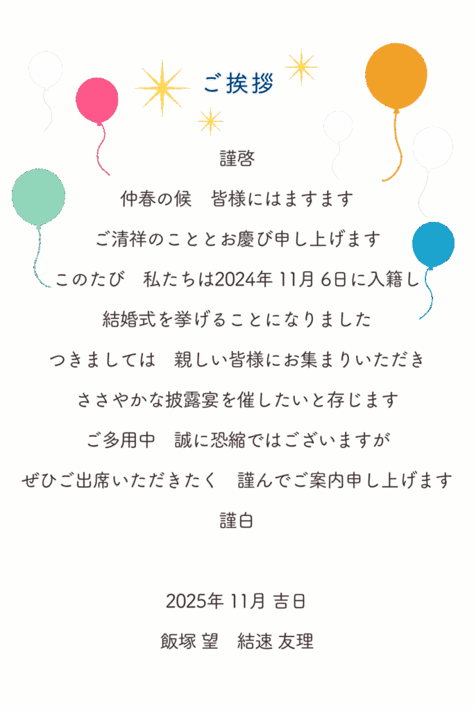 新郎・新婦へのメッセージ